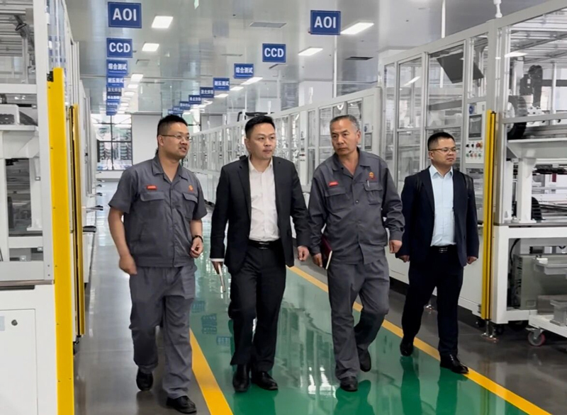 Accompanied by Deputy General Manager Kang Xueyuan and other leaders, the visiting team from CATL successively toured the energy storage container assembly line, the CCS production line, and the energy storage PACK integration production line, gaining an in-depth understanding of the processing procedures and manufacturing technologies.